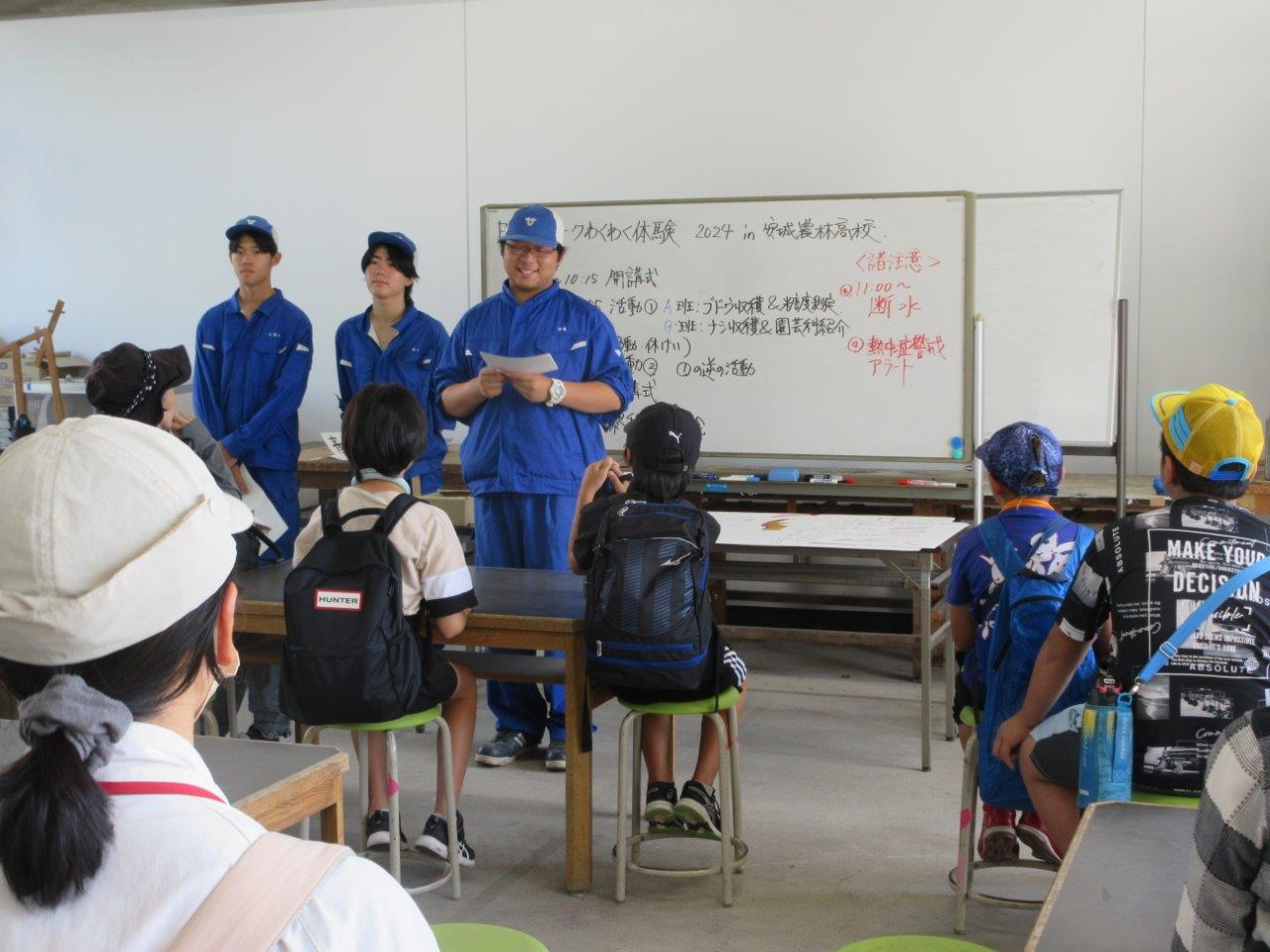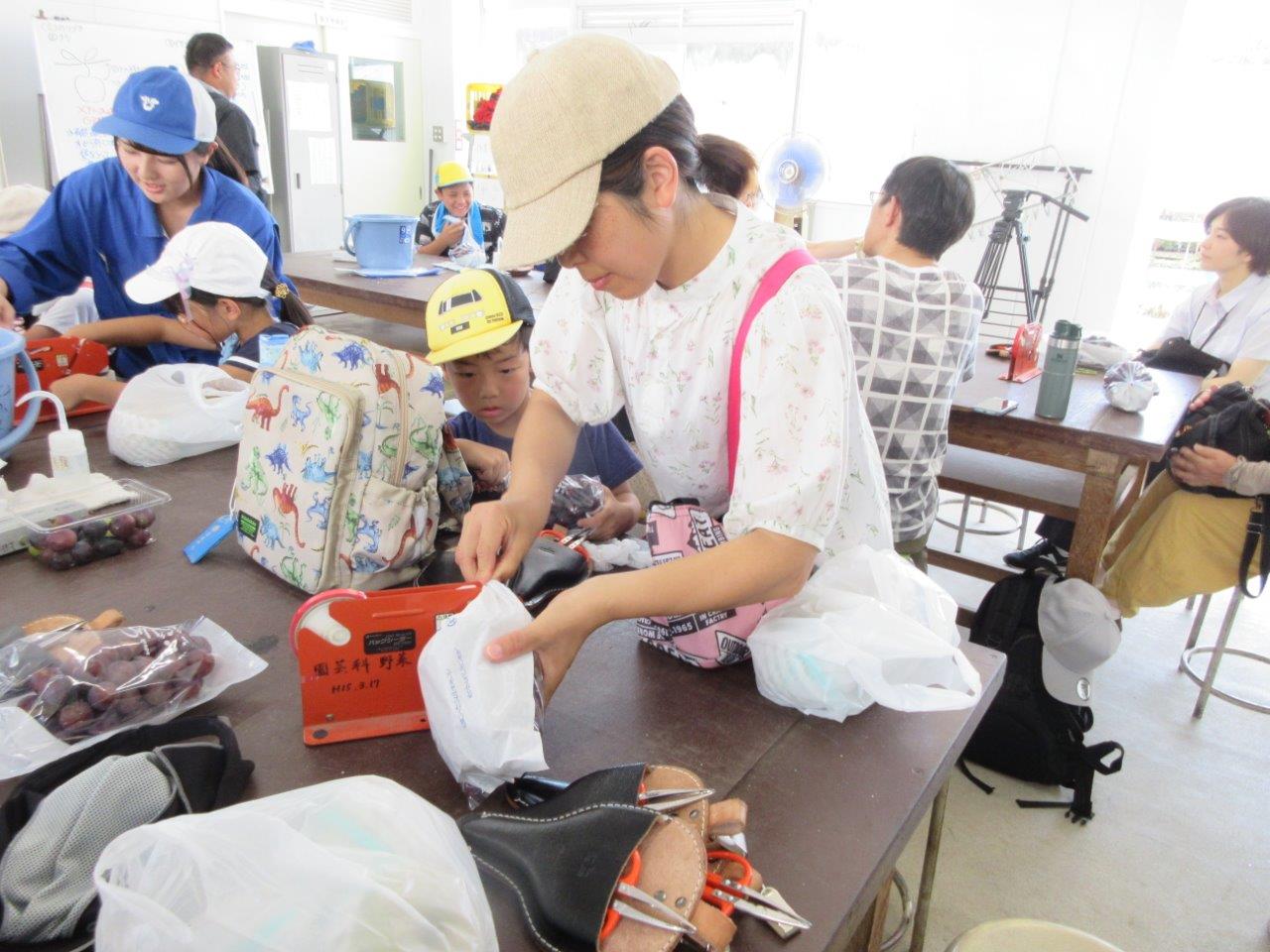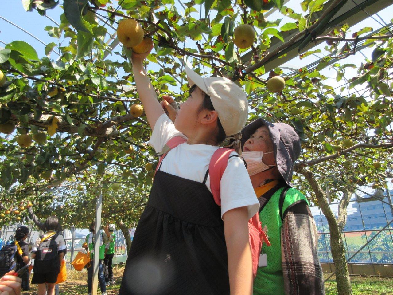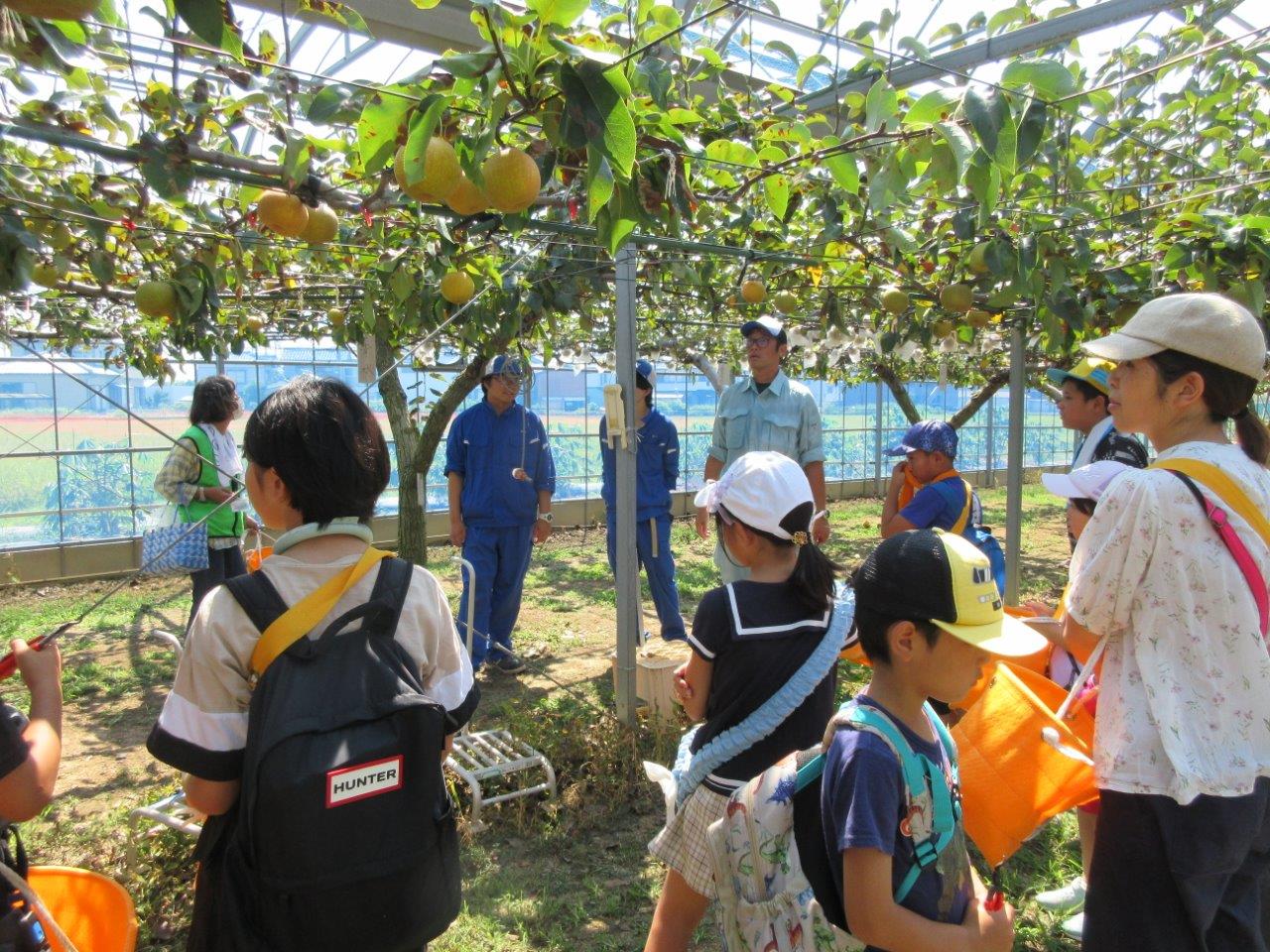 初めに安城農林高校に来て、ブドウ狩りと梨狩り体験をします。